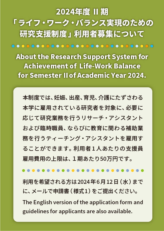 2024年度 Ⅱ期「ライフ・ワーク・バランス実現のための研究支援制度」