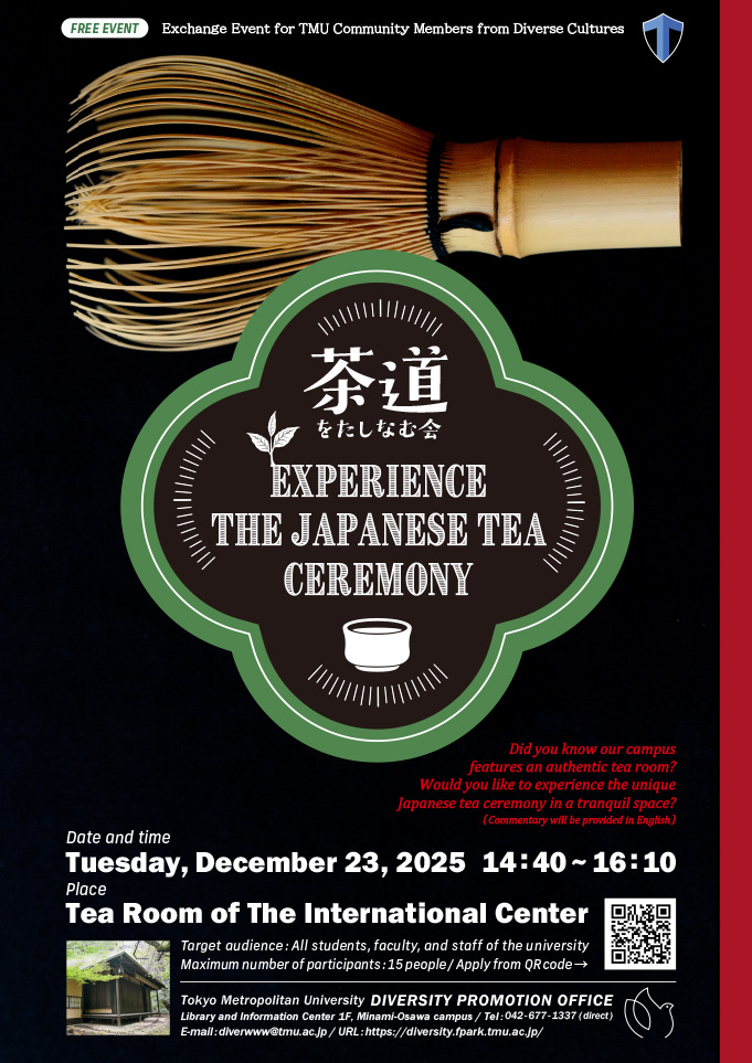 対 象:本学の教職員、学生、留学生 / Target audience: Faculty, staff, students, and international students of Tokyo Metropolitan University